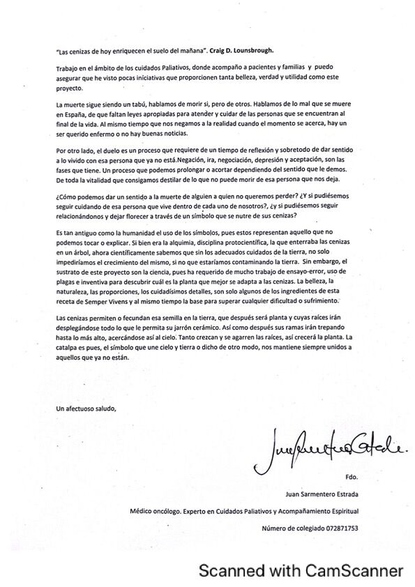 Lo conceptual concretado y soportado en auténtica ciencia y materializado en una obra de arte. Acreditamos nuestro know how, crecimiento vegetal con la participación directa de las cenizas del ser querido contando con la correspondiente patente otorgada por el Ministerio de Industria de España y respaldada en 157 países a nivel mundial.